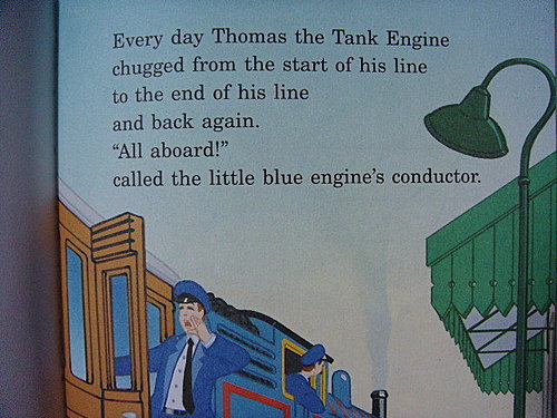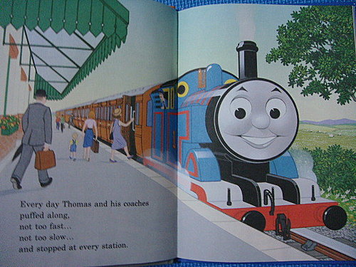 我家阿D在中華電信MOD看到Thomas小火車之後.就愛上他了!而且自己幫他取名”企恰”(1歲多時的寶寶話.車子叫”嘟嘟”.火車叫”企恰”.熊熊叫”阿布”.開水叫”那那”…)於是我就開始留意Thomas之類的繪本.但是….天吶!大部分繪本字也太多了吧!有時簡略的說故事.我家妞和阿D也會抗議!(小孩不好騙呀!)但是上完課回家再繼續講故事.真的會”燒聲”喉嚨痛!!