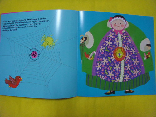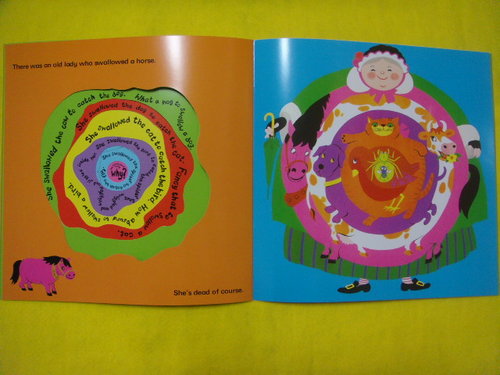 本書是繪者Pam Adams 重新詮釋美國經典民間歌謠,並且加入洞洞書設計,切合故事情節,並增添閱讀故事的樂趣。故事內容具循環性、可預測的荒謬故事,「動物」是這本書的主角,隨著不斷重覆的句型,一一被介紹出來。沿著故事的發展,內文的挖洞越來越大,也象徵著老婦人的胃口越來越大;文字的語氣和紙張的剪裁在此完美結合,成功地把整個故事的怪誕、驚奇氣氛烘托出來。搭配JYbooks的故事CD,可聽故事、跟讀故事,還可以讓孩子跟著CD唱歌!